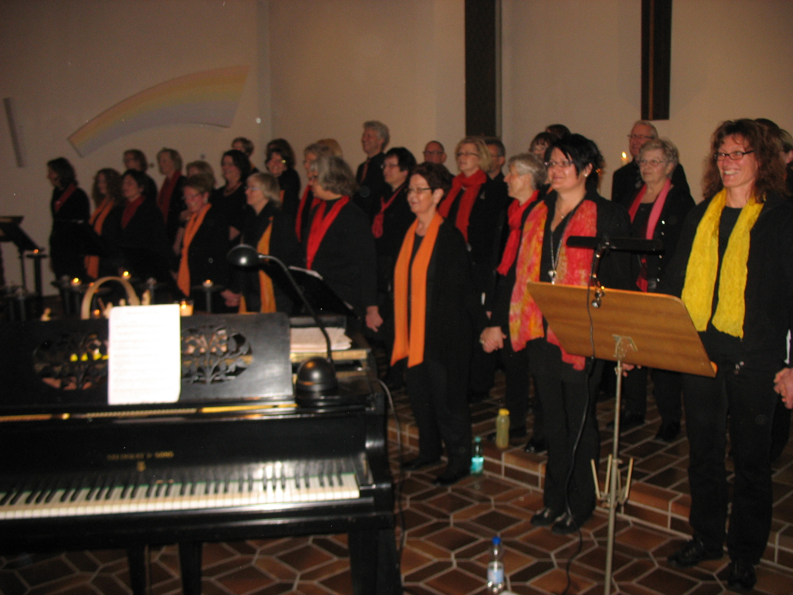 Nach viel Applaus verabschiedeten wir die Konzertbesucher mit der Zugabe „We Can Move Mountains“ – dem Lied zum Gospelday 2012. Die Zuhörer waren begeistert vom Konzert, verließen vergnügt die Kirche und gingen in einen winterlichen Abend des 2. Advents.